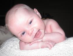 About 7 weeks here, trying to get a full smile on camera but not succeeding. ----->