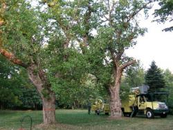 No diet blogging this morning. I can't concentrate on anything except the crew that arrived at 7:30 to take down the two old box elders in the back. We've really enjoyed these trees for the past nineteen years and we're going to miss them. And the fairies that a little girl was once convinced lived in the gnarled old trunk of the bigger tree.