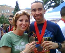 I am waiting for my ride to the surgery center. They are late. I thought I would give you a picture of Beka an Aaron the day they got engaged. He proposed to her after a race in Sugarland. He helped give out the awards table. Then he called her up to the table and she had no idea why since she had not run that day. In front of the entire crowd he propose to her with all their friends looking on. They both are runners and have made athletic events apart of their lives, so this was very cool. ...Sunday, April 27th 2008