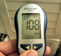 I just took my blood glucose a little bit ago. I ate some watermelon maybe 1/2 an hour before that, and I had lunch 3 hours prior to it. I was just curious to see what it would be, not at fasting. I have been off of metformin for 4 solid days now. Last dose was on Saturday. I am really, really pleased with this number.