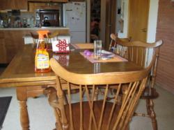 Hubby did almost all the elbow grease before this morning -- the house is CLEAN and looks SHARP. All I did this morning was to polish the table and chairs (I do so enjoy my Salvation Army find - these are wonderful table and chairs! [pic above]), and begin food prep -- the meat is marinating in a sauce of fresh squeezed orange juice, orange zest, sherry, soy sauce, and potato flakes (a substitute for cornstarch). After our showers I'll scrub the tub and bathroom with my new scrubby devices. Nothing inspires a desire to spring clean (at any time of year) like a new set of cleaning tools.