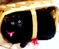 Patches, named after the patch on the chest, one of our past cats loved to lie around in a basket. The photo was taken one day while she was playing around.