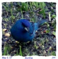 Birds, like the flowers, are also getting in full bloom these pretty days. These pretty little buntings are showing up in large numbers. We usually have only one or two pair but this year they are in full bloom at both the front and back yard feeders.